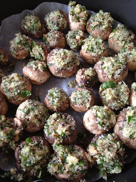 Когда закончите со всеми грибами, поставьте их в разогретую духовку в центр на 20 минут.