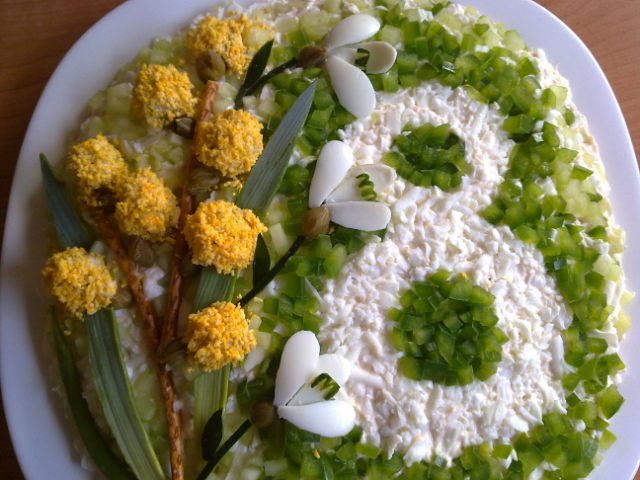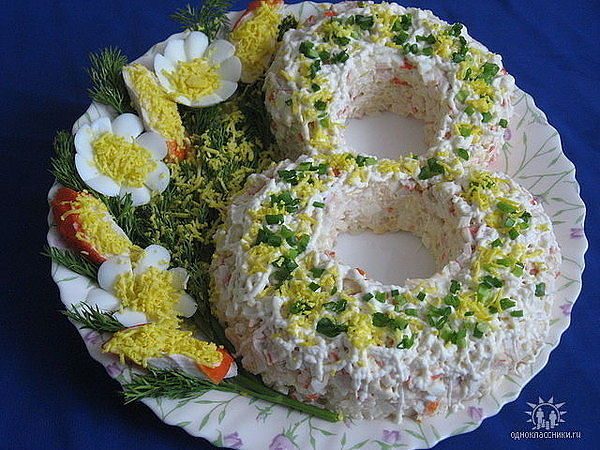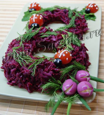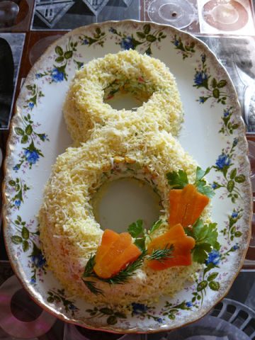 Варианты оригинального оформления салатов к международному женскому празднику. Так можно оформить любые салаты к 8 Марта!