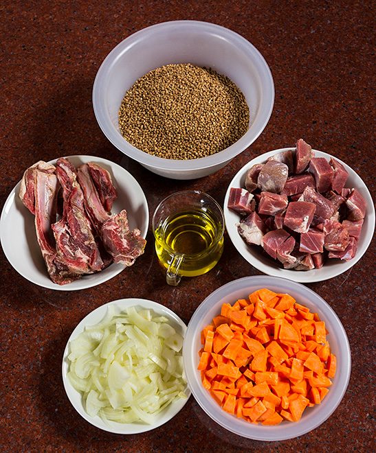 Готовится это блюдо точно по такой же схеме, что и обыкновенный ферганский плов. Только соотношение продуктов иное: меньше масла, меньше лука и меньше моркови. Да и резать морковь можно обыкновенным кубиком, а вот мяса… Мяса можно взять сколько душе будет угодно, да только надо иметь в виду, что плов и гречневая каша — блюда не про мясо!
