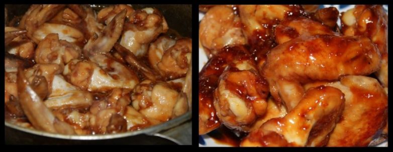 Когда соус начнет густеть и тогда снимаем крышку и начнется самый приятный процесс приготовления — карамелизация крылышек и приобретение необыкновенно-золотистого цвета.