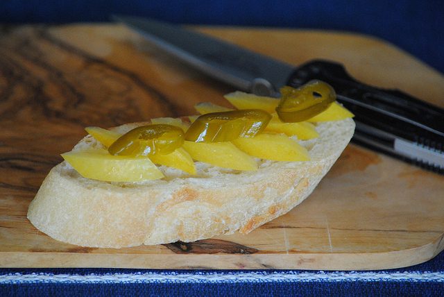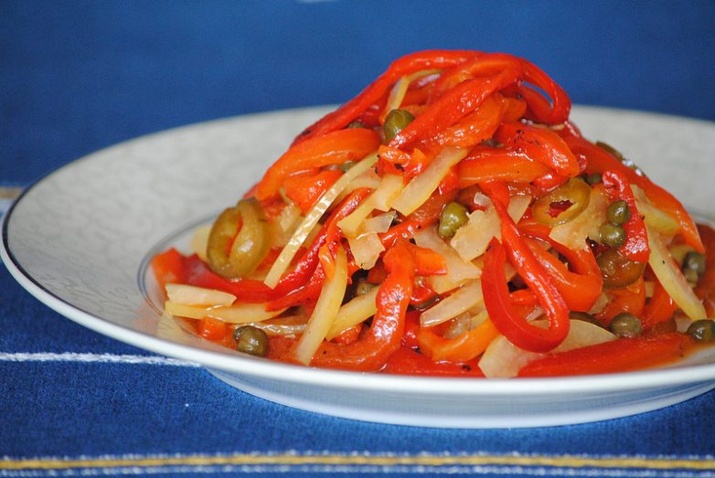 Полоски сладкого печеного перца, кожица соленого лимона, каперсы, оливковое масло. Красота, и утром ничего больше не нужно!