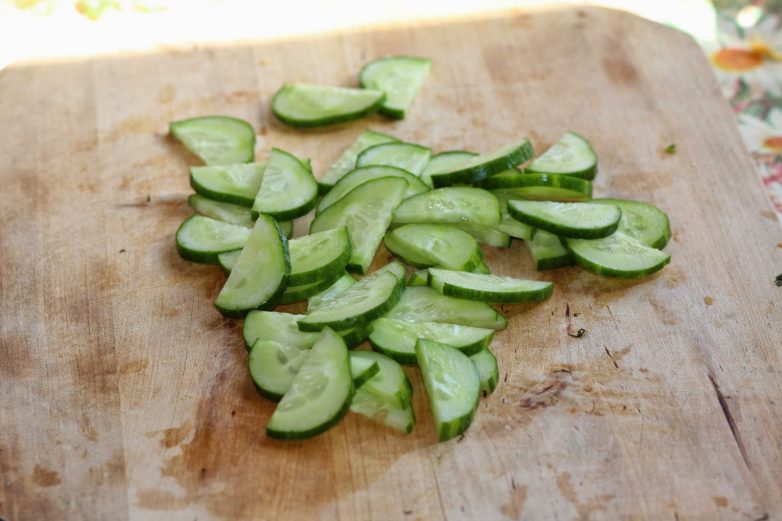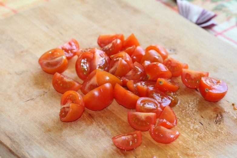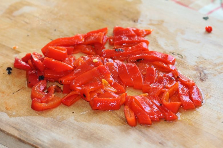 Достать перчик из пакета, снять кожицу и удалить семена. Нарезать перчик соломкой.