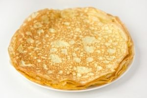 Сразу же на раскалённой сковороде из получившейся яичной смеси жарим блин с двух сторон — переворачивайте очень акккуратно, чтобы сохранилась его целостность! Советую жарить яичные блины на широкой сковороде.