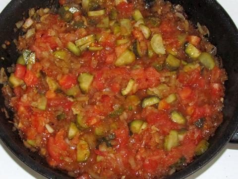 Обжарку добавляем к мясу. Накрываем кастрюлю с мясом крышкой, продолжаем тушить.