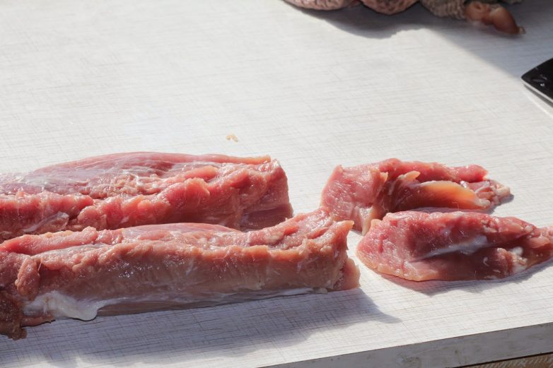 Мясо вымыть и высушить. Отрезать тонкие концы.