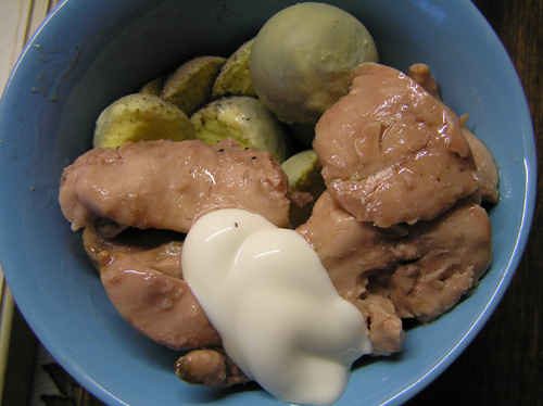 2. баночка печени трески (можно и шпроты использовать запросто, но с печенью нежнее получается)