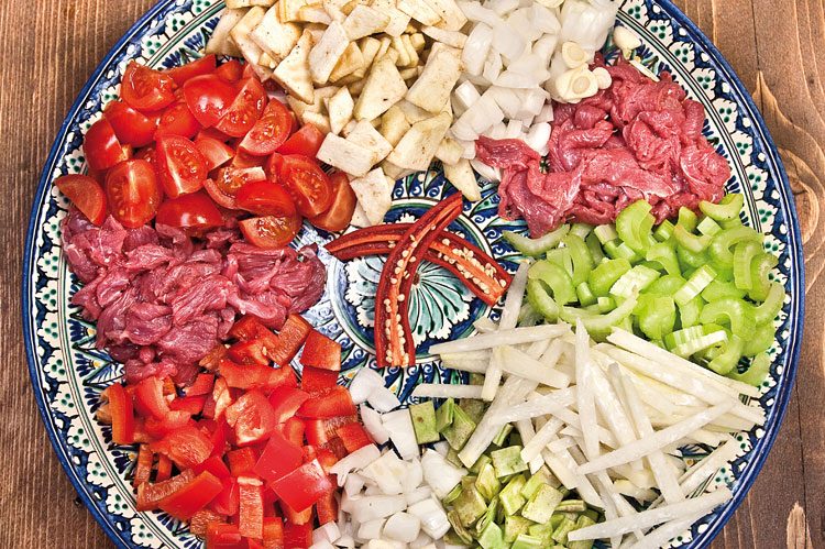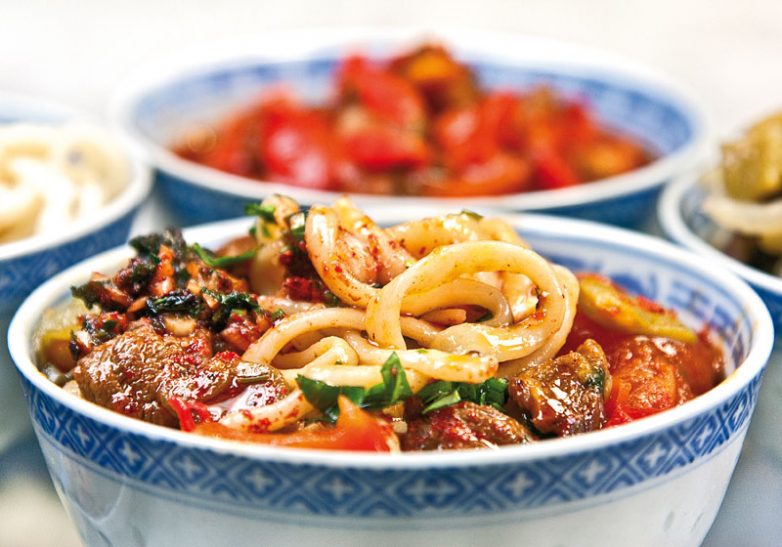 Впрочем, лагман, наверное, тем и хорош, что вольностей в его приготовлении гораздо больше, чем правил, которых кот наплакал. И особенности той или иной его версии заточены в основном на практичность и разнообразие. Например, как ловчее вытянуть лапшу. Или — в какой последовательности и в какой комбинации сложить (а то и разделить) прочие компоненты, чтобы блюдо во всех смыслах заиграло ярче. К этим особенностям есть резон приглядеться хотя бы для того, чтобы раздвинуть собственный горизонт представлений о лагмане, который, повторюсь, никто и никогда не пытался укладывать в какие-либо железобетонные установки, если не считать расплодившихся доморощенных мифотворцев, «знающих», какой лагман «настоящий», а какой — нет. Вот от особенностей уйгурского лагмана мы, как от печки, и «спляшем», отметив, чем он отличается от среднеазиатского:
