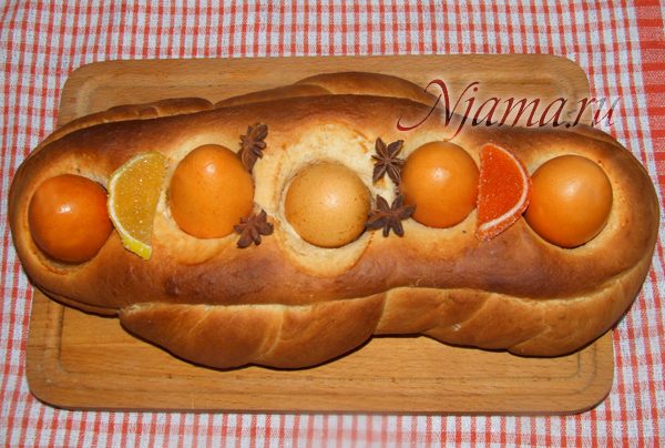 Если вы боитесь, что во время выпечки с яйцами может что-то случиться, то можно выпекать с обычными, а после выпечки заменить их на пасхальные, а эти, к примеру, пустить в салат.