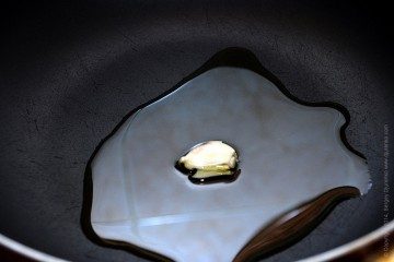 Сложно назвать это блюдо «паста с соусом», скорее это теплый салат из пасты. Процесс отваривания пасты и приготовления соуса — параллельны. Поэтому, прежде всего, поставить большую кастрюлю с водой на огонь и добавить соли. Обычно вода солится в момент закипания, причем количество соли весьма значительно — до 7-10 гр соли на литр. Для указанного количества пасты я беру 3 л воды и добавляю 0.5 ст.л. соли — это около 15-20 грамм. Важно не солить воду после того, как в нее положили пасту. Варить пасту, причем любую, надо строго то время, которое рекомендуется на упаковке. Тогда паста будет сварена по стандарту al dente — «на зубок», когда при готовности в самой ее средине ощущается едва заметная твердость.В глубокой сковородке разогреть оливковое масло. Очистить чеснок и раздавить зубчики колодкой ножа, расплющить. Обжарить чеснок в масле в течение 2-3 минут, чтобы чеснок немного ароматизировал масло. Затем чеснок извлечь и выбросить.
