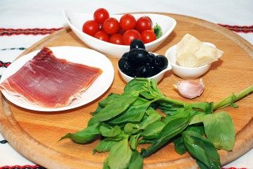 Для этого блюда лучше всего использовать мелкие помидоры, можно брать черри, но в крайнем случае подойдут и обычные томаты, но нужно брать не сочные сорта, чтобы при обжаривании ломтики держали форму, а не превратились в томатную пасту!