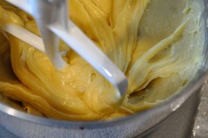При помощи миксера взбивать массу, постепенно добавляя яйца.