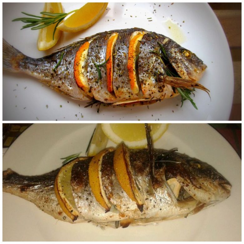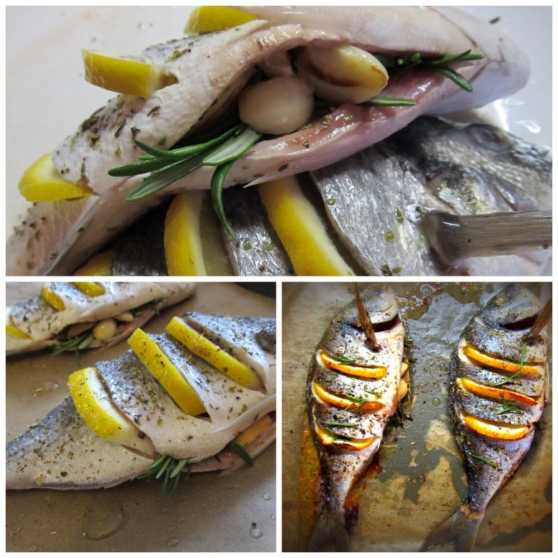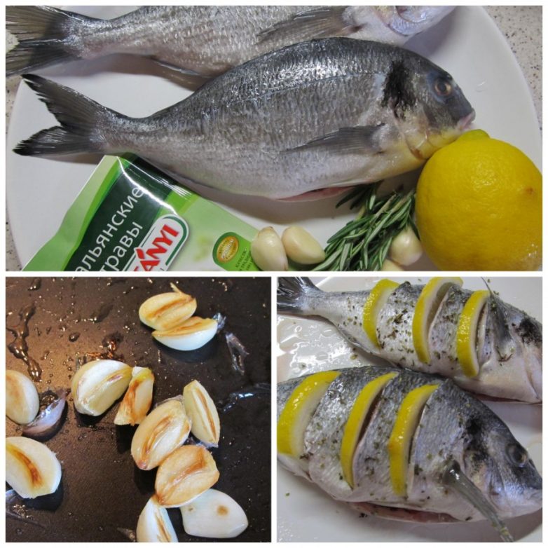Дорада, запечённая с лимоном, чесноком и ароматными травами