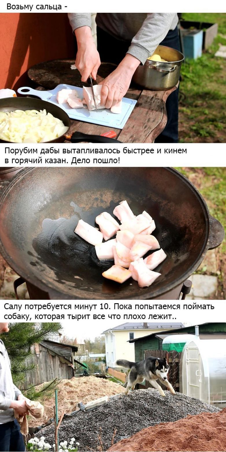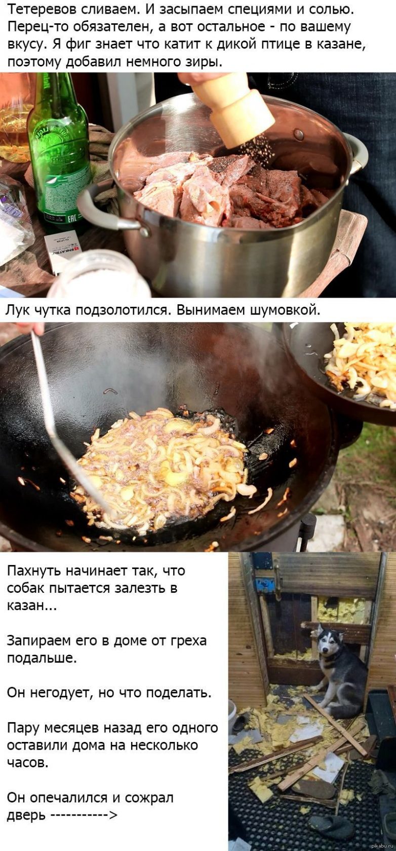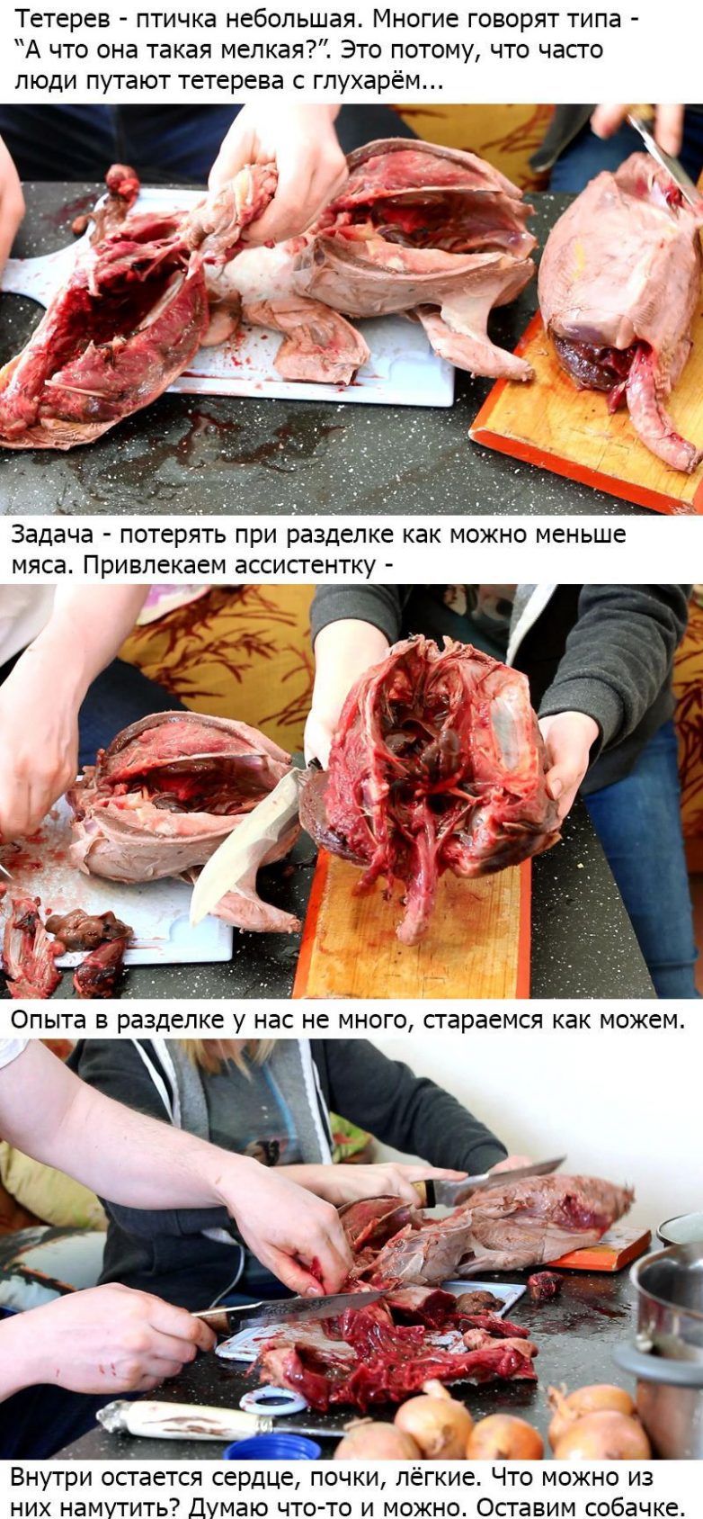Подробное описание рецепта на тему охотничьей кухни — приготовления мяса тетерева в казане с картошечкой. Пост не рекомендуется к прочтению вегетарианцам и любителям птичек.