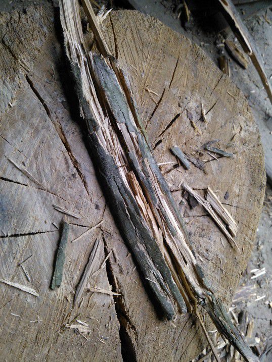 Щепки отсутствовали, пришлось сухие вишнёвые ветки можжить кувалдой, проще оказалось обухом топора