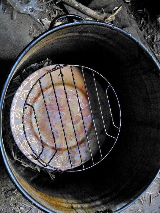 Поддон для стекания жира обязателен, чтоб мясо пропиталось древесным дымком, а не запахом прогорклого жира. Декоративную тарелку жалко, конечно, но она была мечтой перфекциониста — по размеру кастрюли подходила идеально