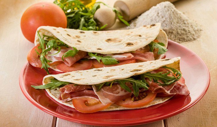 Типичная для Эмилии-Романьи, Пьядина — альтернатива хлебу. Точно так же, как крешия, она может быть заполнена многими компонентами, такими как сыр, или салуми. Пьядина готовиться из муки, сала, воды, бикарбоната.