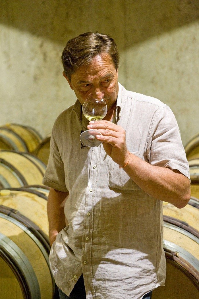 5. Винодел Доминик Лафон (Dominique Lafon) дегустирует вино в своих подвалах. Этот снимок также является победителем конкурса «Винный фотограф года Errazuriz 2014». (Фото: Jon Wyand)