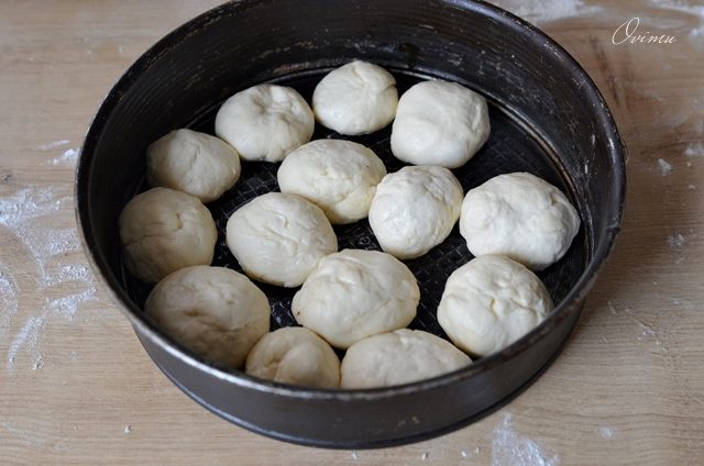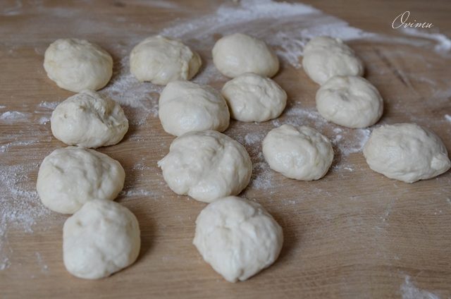 На доске присыпаной мукой ещё раз вымешиваем и смоченными маслом руками формируем маленькие булочки.
