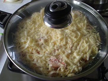Сыр трем на крупную терку.