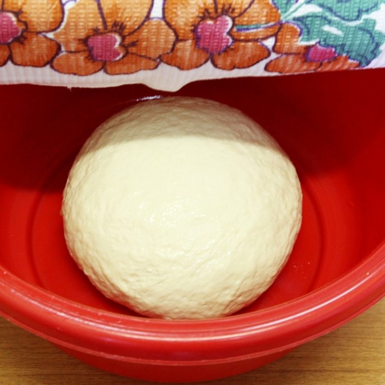 Накрываем тесто полотенцем или пищевой пленкой, ставим в теплое место для брожения на 1-1,5 часа. За это время тесто должно увеличиться в объеме приблизительно в 2-2,5 раза.