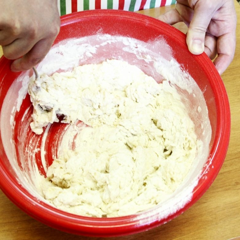 Замешиваем тесто: для приготовления питы оно должно быть чуть гуще, чем для обычного домашнего хлеба. Вручную вымешиваем мучную массу 5-10 минут до тех пор, пока тесто не станет эластичным. Или доверим эту операцию кухонному комбайну или хлебопечке, используя программу «Тесто».