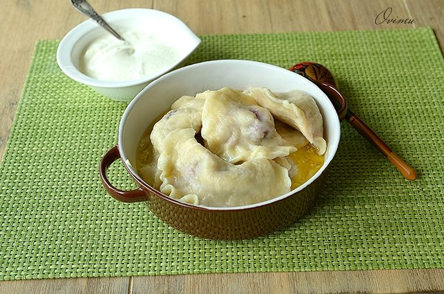 Вареники делают из пресного теста и с разнообразной начинкой. Как правило их подают с сметаной и шкварками. Готовят вареники как на пару, так и отваривают в кипящей воде.