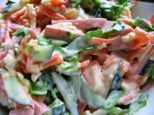 Салаты с сосисками очень разнообразны: их можно делать в облегченных вариациях со свежими овощами и заправками на основе растительных масел или сока лимона, или же в более калорийных – с картофелем, майонезом, вареным яйцом и т.д. Чаще всего встречаются рецепты, в которых сосиски сочетают, все-таки, со свежими овощами и легкими заправками.