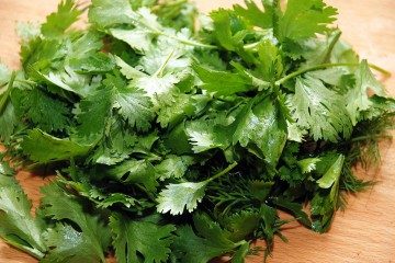 Всю подготовленную зелень промыть и перебрать. Удаляя стебли и поврежденные листья. С петрушки оборвать листья, с укропа веточки — стебли достаточно грубые, они будут лишние. А зелень кинзы можно использовать вместе со стеблями, они весьма сонные и мясистые. Нарезать всю зелень, не слишком мелко. Сложить зелень в миску. Добавить щепотку сахара, совсем чуть-чуть. Сахар растает от влаги почти сразу