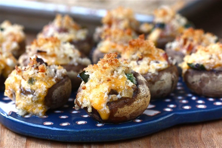 Курортный сезон начался — время встреч и торжеств! Фаршированные грибы одно из моих любимых блюд, они легко готовятся, их форма и размер просто идеальны. С начинкой из сливочного сыра и бекона, с хрустящими хлебными крошками – аппетитная и очень сытная закуска. Позовите друзей, приготовьте двойную порцию и наблюдайте, как быстро она исчезает. Это произойдет — гарантирую!