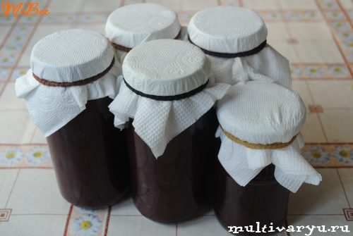 После того как появятся первые пузыри, раскладываем соус в чистые сухие баночки. В кастрюльку мультиварки стелим селиконовый коврик или любую тканевую салфетку. Наливаем воды по плечики баночек, сверху накрываем крышками и стерилизуем на режиме «пароварка» 15 минут.