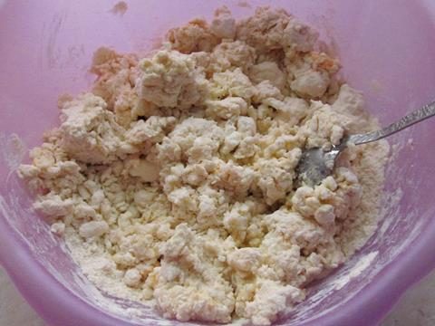 Замесить тесто. Для этого я сначала перемешиваю все ингредиенты столовой ложкой, а затем вымешиваю руками. Желательно охладить его перед раскатыванием, чтобы было удобнее работать. Для этого достаточно убрать тесто на 30-40 минут в холодильник.