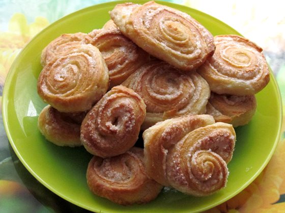 Получившиеся кружочки-розочки аккуратно выложить на противень или форму, смазанную сливочным маслом и покрытую бумагой для выпечки. Хотя в принципе можно обойтись без бумаги.