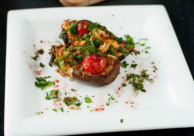 Баклажаны с розовым соусом и сулугуни – это очень вкусная и ароматная летняя закуска из баклажанных лодочек с начинкой.