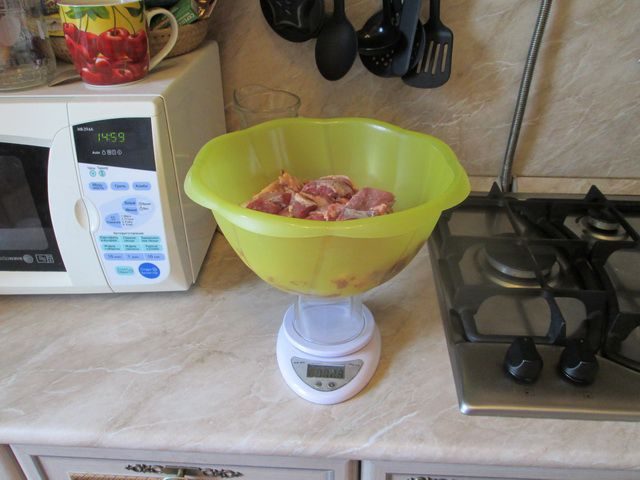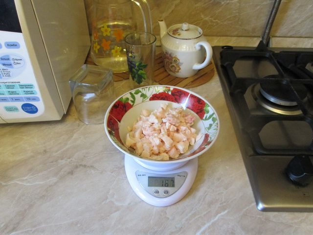 Режем и взвешивает, что б знать сколько остального добавлять…