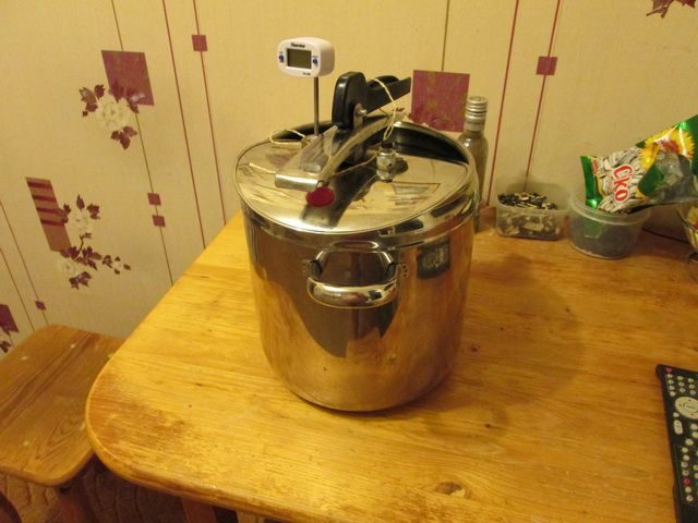 Для чистоты процесса встраиваем в скороварку термометр и придумываем способ регулировки температуры внутри. Регулировать будем с помощью давления (в допустимых приделах конечно), что б аварийный клапан не выбило.