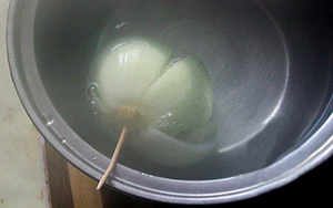 Накалываем нашу лилию на зубочистку и опускаем на 10-15 секунд в горячую воду.