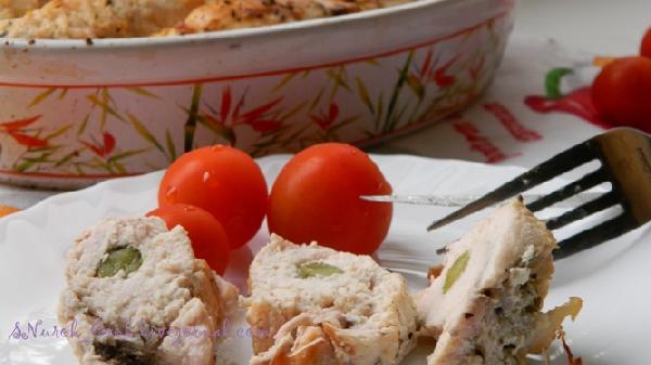 Куриные рулетики с маринованными огурчиками запеченные в сметане