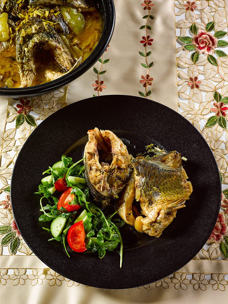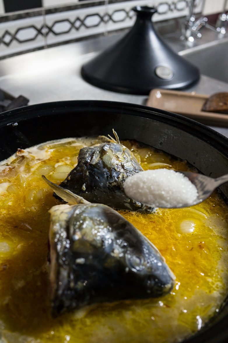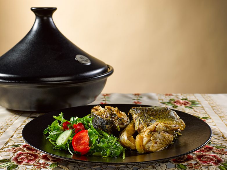Но, вне всякого сомнения, рыба будет готова уже через двадцать-тридцать минут, если готовить на обыкновенной газовой плите и под обычной крышкой. Конусные крышки, характерные для таджина, позволяют готовить при более низких температурах и тогда минимальное время приготовления составит 40-60 минут, при условии самого деликатного кипения соуса.