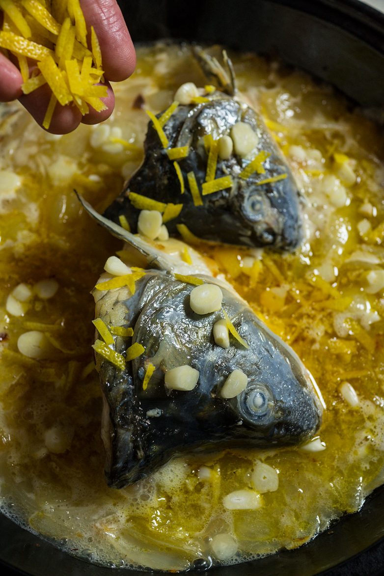 Все остальные части рыбы будут готовиться на пару, я советую обжарить только головы, чтобы добавить блюду чуть-чуть того привлекательного запаха, который сопутствует жаренной рыбе. Но этот запах ни в коем случае не должен стать главным в данном блюде — пусть он прозвучит только фоном.
