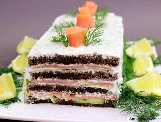 Нежный закусочный торт из лосося
