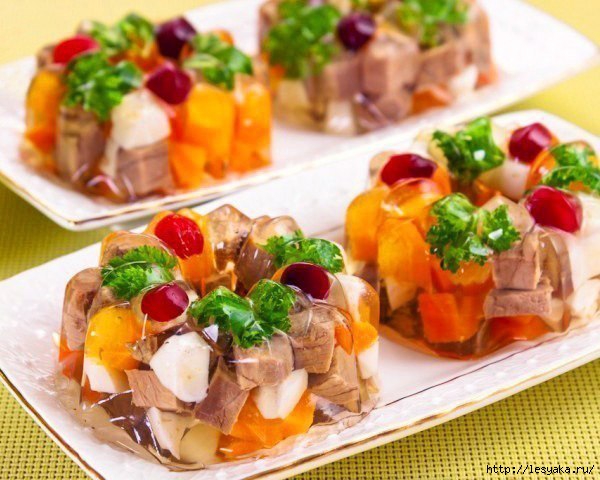 Вот таким интересным способом можно оформить заливное и удивить своих гостей, а кроме того — это очень вкусно.