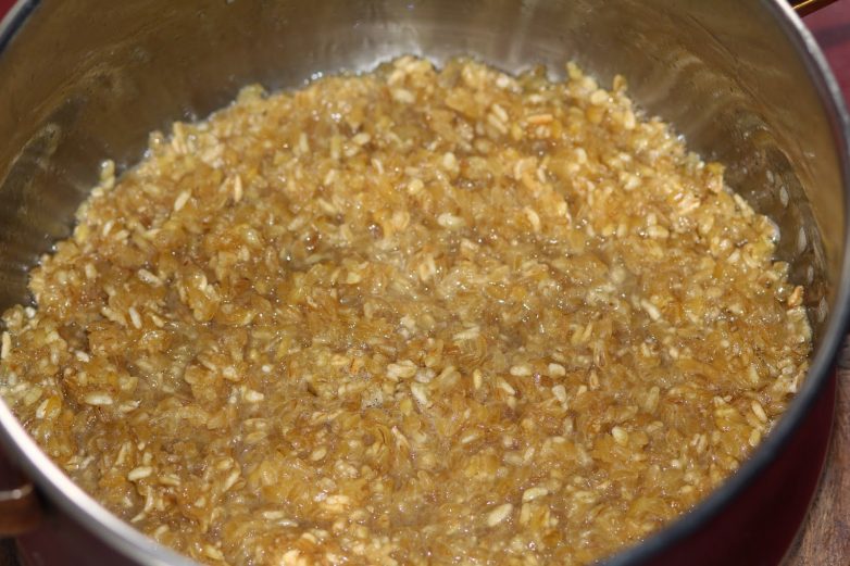 2. Всыпать в масло крупу и обжарить булгур в течении 3 — 4 минут.
