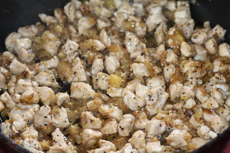 8. Куриную грудку нарезать кубиком, примерно 1.5 см.