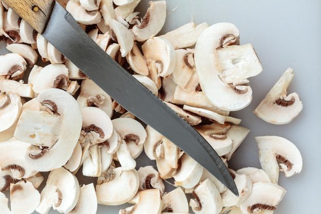 Для блюд чаще всего используют шампиньоны, лисички, белые грибы, подосиновики, опята, маслята, сморчки, вешенки, грузди. Подходят грибы как в свежем виде, так и вареные, жареные, соленые, маринованные, сушеные.