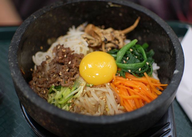 Пибимпап (кор. 비빔밥) — одно из самых знаменитых блюд корейской кухни. По традиции подаётся в глубокой посуде и представляет собой набор из риса, кусочков мяса или морепродуктов, нарезанных соломкой овощей, острой пасты кочхуджан, сырого или жареного яйца и т.д. Все ингредиенты смешиваются только перед употреблением. (su-lin)