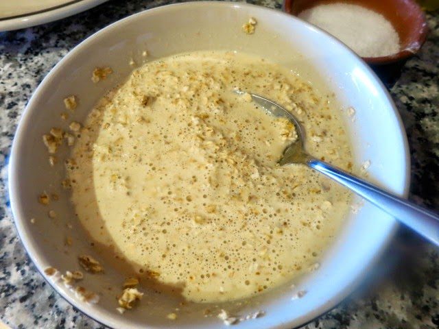 Овсяные хлопья заливаем молоком, перемешиваем и на время оставляем.