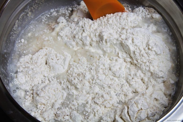 1. Вымесите тесто, используя ингредиенты. Не забывайте о том, что тесто для чиабатты должно быть жидким. При замешивании не добавляйте в тесто всю муку сразу. Мука, в зависимости от ее сорта и качества по разному впитывает воду. Поэтому муки вам может потребоваться чуть больше или чуть меньше от общего объема, указанного в рецепте. Наша задача получить очень и очень липкое тесто, примерно такое, как на фото №3. Не бойтесь! Не прилипнет тесто к вам мертвой хваткой. Отлипнет!