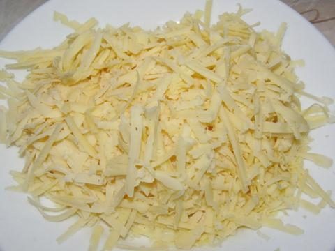 Сыр натереть на крупной тёрке.