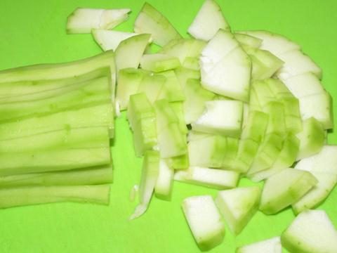 Кабачки режем на кубики.