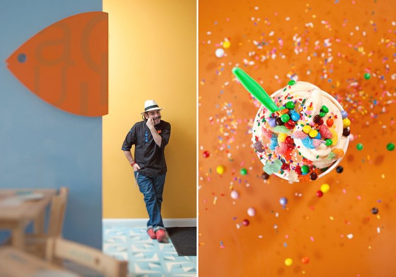 5. Слева: шеф-повар Акилс Чавез в его ярком ресторане La Fisheria в Хьюстоне. Справа: замороженный йогурт в кафе-мороженом в Фениксе, Аризона. (© Mark Lipczynski)